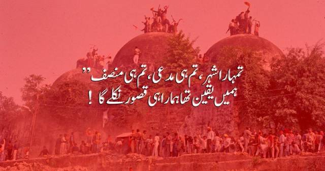 راقم کا تعلق فیض آباد کے گاؤں سے ہے جہاں سے اجودھیا 50/60 کیلو میٹر پر واقع ہے۔ اجودھیا اور فیض آباد دونوں جڑواں شہر ہے۔ فیض آباد شہر کے مقابلے میں اجودھیا شہر بہت چھوٹا سا شہر ہے جس کو قصبہ کہنا غلط نہ ہوگا۔ یہاں سیکڑوں مندر ہیں۔ ہر ایک اپنے مندر کو ’رام مندر‘ کہتا ہے تاکہ زیادہ سے زیادہ یاتری ان کے مندر میں آئیں اور وہ اس کا فائدہ اٹھا سکیں۔ یہاں ریلوے اسٹیشن بھی ہے اور بزرگوں کے مزارات بھی ہیں۔ بہت سی تاریخی چیزیں بھی ہیں۔ بابری مسجد کے اندر 21/22دسمبر 1949ء کی درمیانی رات کو چند شرپسندوں نے مورتی رکھ دی اور یہ افواہ پھیلا دی کہ زمین کے اندر سے بھگوان رام کا ظہور ہوا ہے۔ انتظامیہ اور عدلیہ کی مدد سے مسجد کا دروازہ بند کر دیا گیا۔ یہاں سے قانونی ظلم کی شروعات کی گئی۔ دوسرا ظلم مسجد کا دروازہ کھول کر پوجا پاٹ کی اجازت ہے۔ تیسرا بڑا ظلم جس کو ظلم عظیم کہنا چاہئے، 6 دسمبر 1992ء کو بابری مسجد کی شہادت ہے۔ چوتھا سب سے بڑا ظلم جو مسجد کے گرانے سے کسی طرح بھی کم بڑا ظلم نہیں ہے بلکہ بعض لحاظ سے اس سے بھی بڑا ہے۔ وہ یہ ہے کہ مسجد گرانے والوں کو بطور انعام مسجد کی جگہ سونپ دی گئی تاکہ وہاں پر وہ رام مندر کی تعمیر کرسکیں۔ سپریم کورٹ کے مشہور وکیل مسٹر کلیشورم راج نے صحیح کہا ہے کہ اس فیصلے سے جہاں دستور، قانون کی حکمرانی اور سیکولرزم کو صدمہ پہنچا ہے وہیں ایک طبقہ یا فرقہ یا سوسائٹی زندگی بھر بے چینی اور اضطراب میں مبتلا رہے گی۔