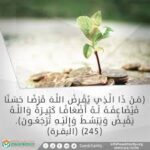کون ہے جواللہ کو قرض دے اچھا قرض ، تاکہ اللہ اسے کئی گنا بڑھا کر واپس دے اور اس کے لیے بہترین اجر ہے۔"