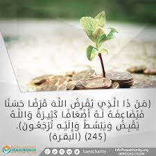 سورۃ الحدید میں اللہ تعالیٰ کا ارشاد ہے: من ذا الذی یقرض اللہ قرضاً حسناً فیضٰعفہُ لہ و لہُ اجر کریم۔