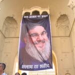 حسن نصر اللہ کا بینر چھوٹے بڑے امام باڑہ پر لگا