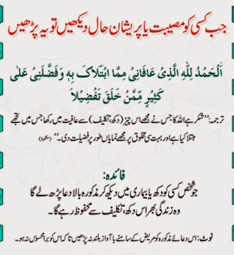 اَلْحَمْدُلِلّٰہِ الَّذِیْ عَافَانِیْ مِمَّاابْتَلاَکَ بِہٖ وَفَضَّلَنِیْ عَلَی کَثِیْرٍ مِمَّنْ خَلَقَ تَفْضِیْلاً