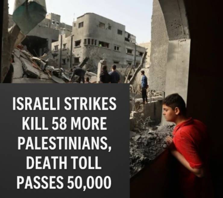اسرائیلی حملے جاری، مزید 58 فلسطینی شہید، مجموعی تعداد 50 ہزار سے تجاوز کر گئی