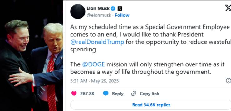 • ایلون مسک کا وائٹ ہاؤس سے استعفیٰ: کفایت شعاری کی مہم ادھوری، کاروبار پر واپسی کا اعلان